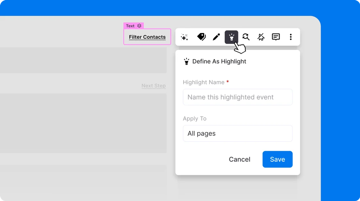 Demo Highlights gives teams exactly that. You define the interactions that matter - specific clicks, views, or actions - and Demostack tracks them. After a session, you can see which highlights a buyer reached and build follow-up around what they actually engaged with, not what you assumed they cared about. Setup happens directly inside the builder, with no extra tools or configuration steps slowing things down.